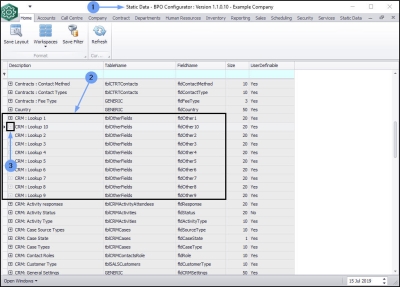 | Ribbon Access: Configurator > Static Data > Static Data |