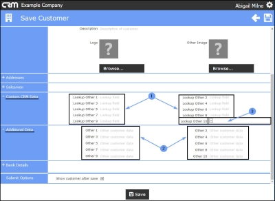 For Additional Data that you wish to store against your customers, you can use Custom CRM Data and Additional Data. You can rename the captions for these fields, depending on the information you need to store.