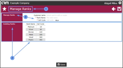 - The selected Rank Name and Call Cycle now populate the Manage Ranks frame.