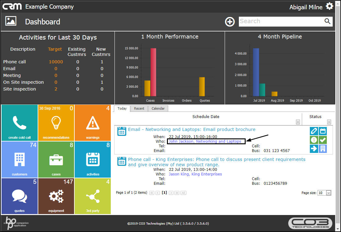 - Click on the blue link in the Who field of any of the activities.
