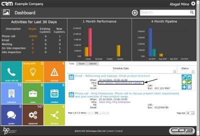 This is a list of Activities that are due today , that you can follow up on and action directly.