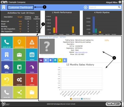 - Here you can view the Customer / Company details and 12 Months Sales History.