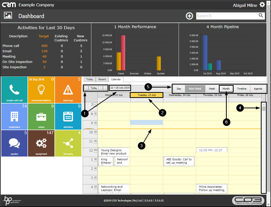 - Ensure that the Calendar tab is selected to be able to view activities over the last 7 days.