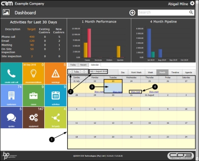 - This screen will display more detail regarding the day's activity e.g. the Customer Name and Activity description.