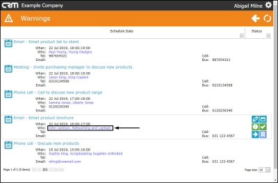 Warnings are notifications of overdue activities, that can be directly actioned.