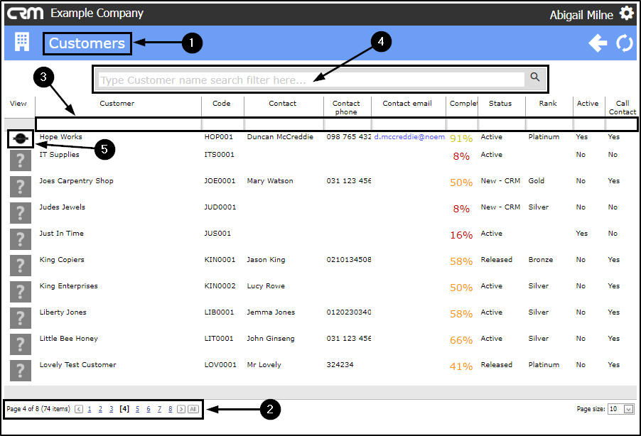 - Or use the filter box to type in the relevant contact name, the system will search for the name as you type. Click on the name.