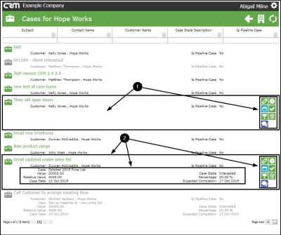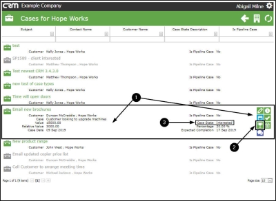- Single click on a Case to access a quick view summary of the Case information and to view the Action buttons.