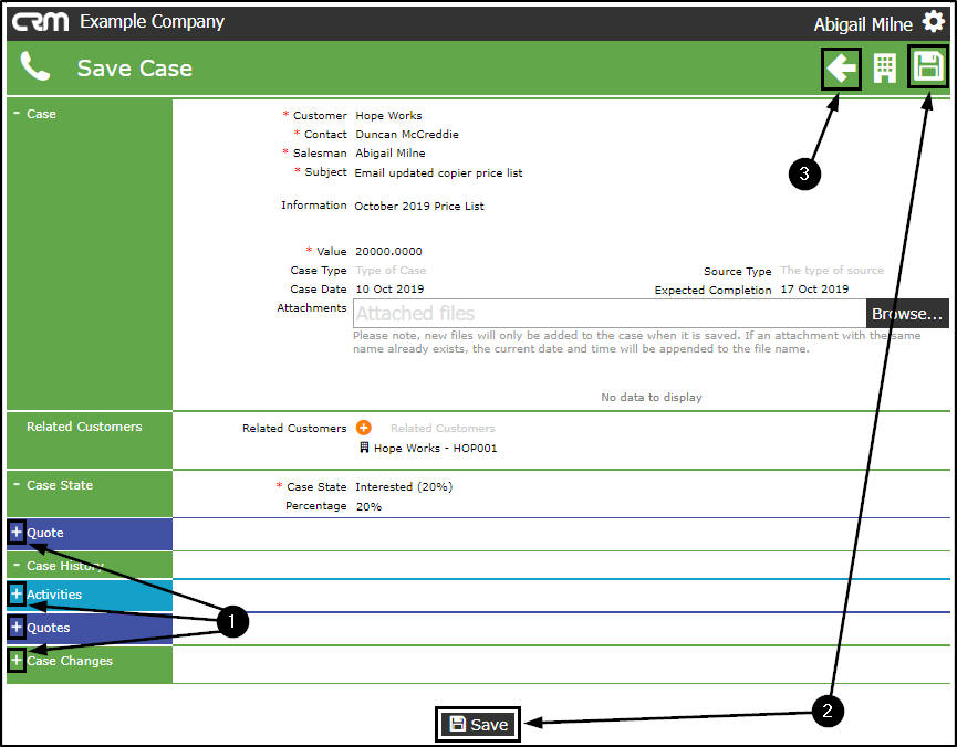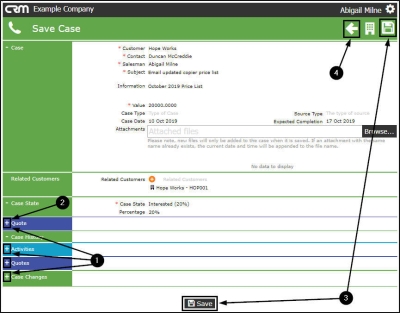 - You will note that the case details are auto populated. You can edit all these details, except for the Customer, Salesman, Subject and Information fields.
