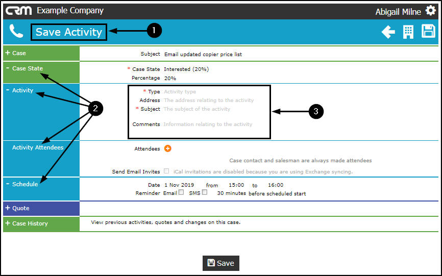 - Here you can view previous activities, quotes and changes on this case, if applicable.