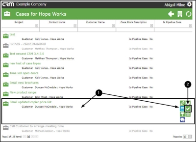 - Hover anywhere over an open Case to display the Action Items buttons.