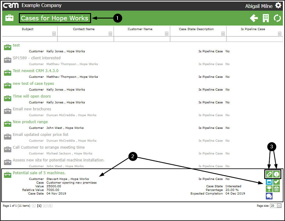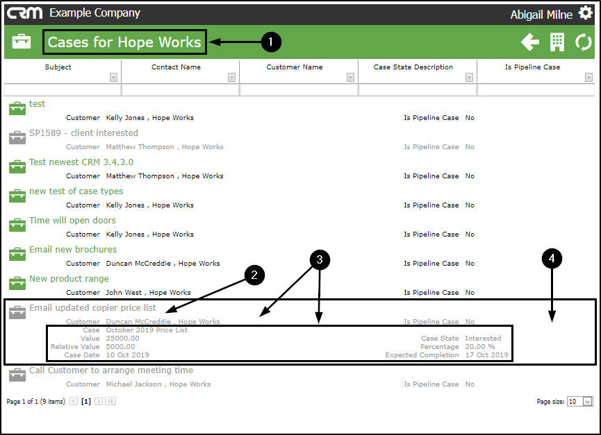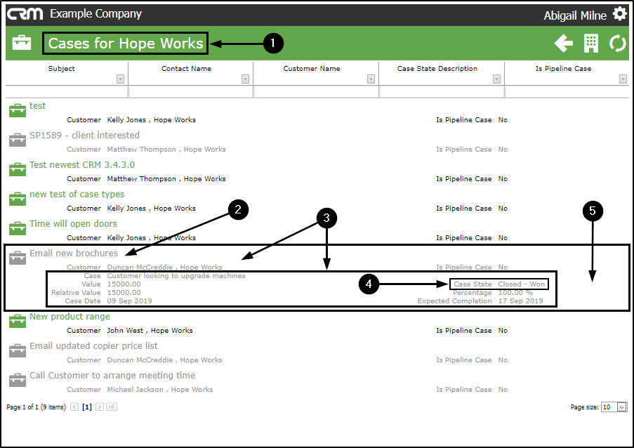 - The Cases for [selected customer] page will now list only the cases linked to this contact name.