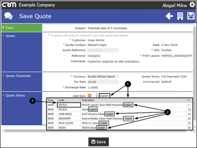 - Quote Reference: The system will allocate a reference number as the quote is saved.
