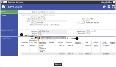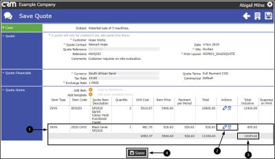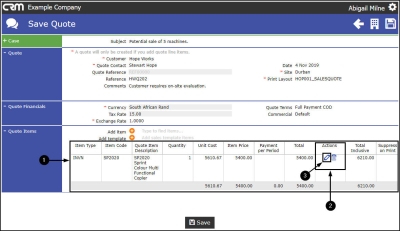 - A Delete button. This will enable you to delete the item from the quote, if required.