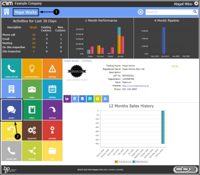 - For the purpose of this manual, we have selected the Customers icon to return to the Customer Dashboard (Customer Home page).