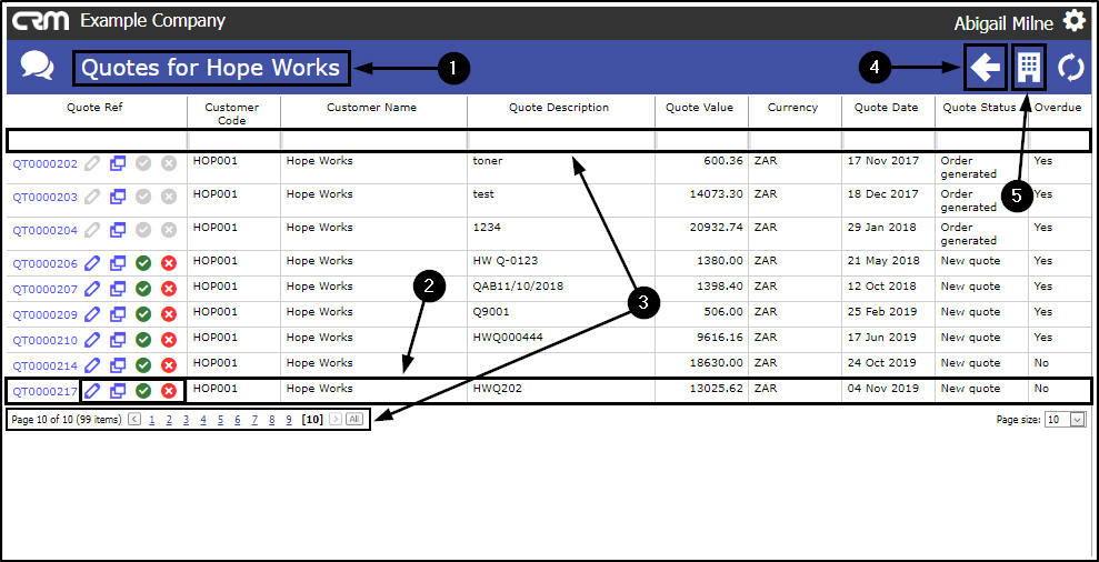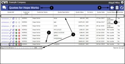 - Use the Page Reference field or the Filter Row to search for the quote if it not listed on the first open page.