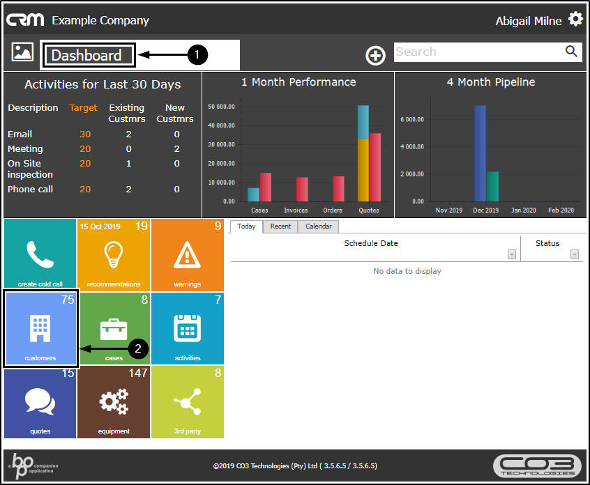 - Click on the CRM icon to return to the Dashboard (Home page).