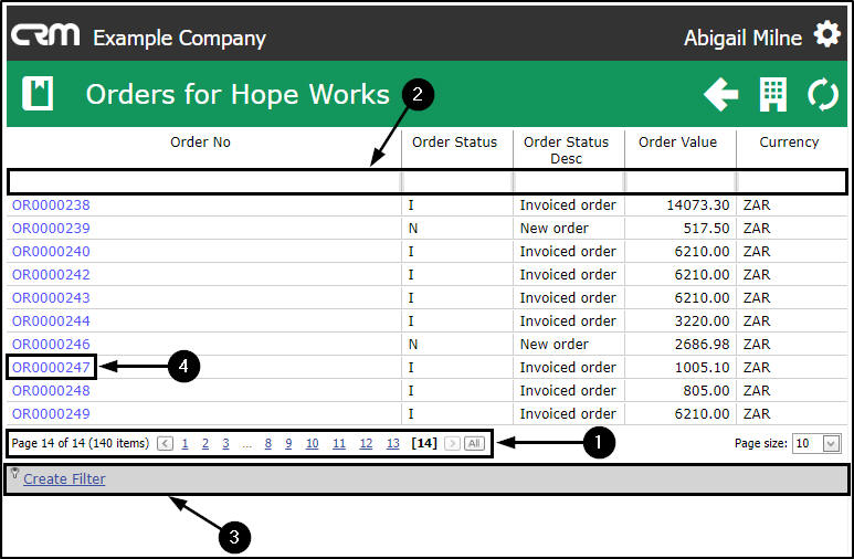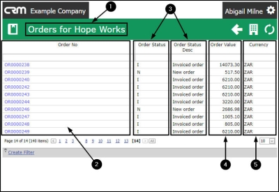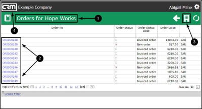 - All of the Orders linked to this customer will be displayed (even ones where you are not the Salesman).