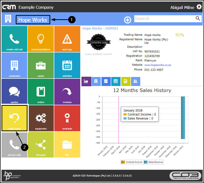 In CRM, you can view and print Sales Credit Notes for your Customers.