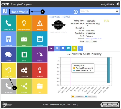 - Click on the CRM icon to return to the Dashboard (Home page).