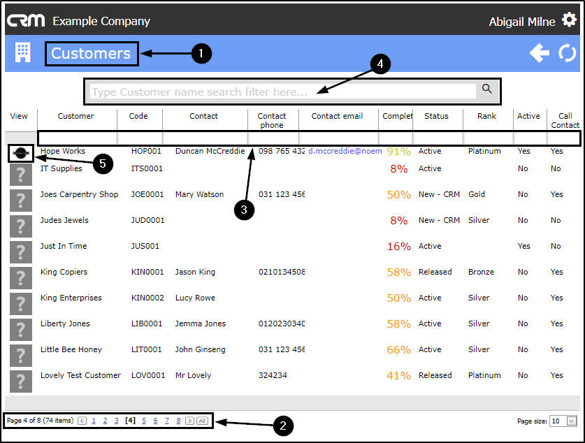 - Click on the selected Customer icon in the View column.
