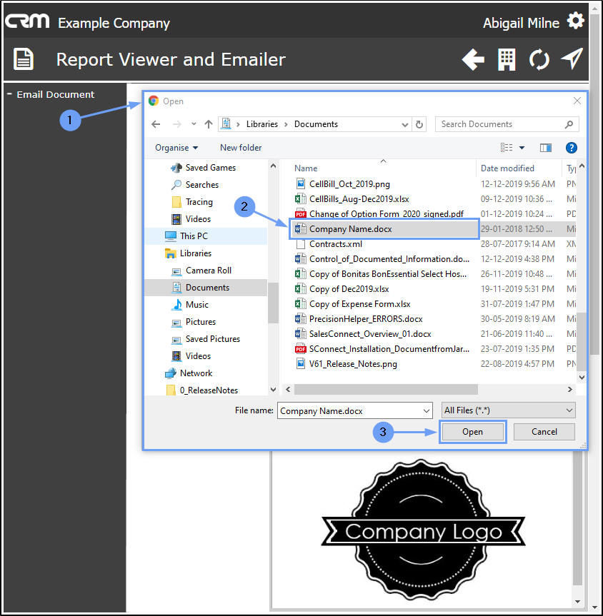 - The Open screen will pop up.