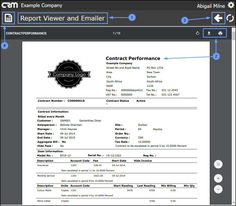 - Here, you can view, download and / or print the Contract Performance report.