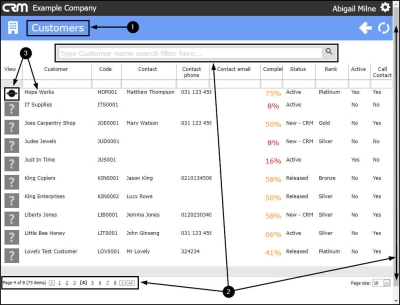 - Click in the View column in the row of the selected customer.