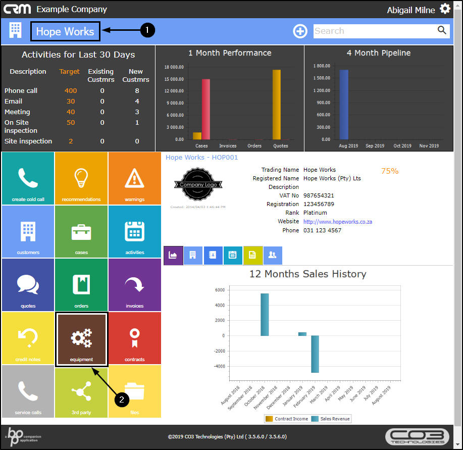 - You will note a number in the top right corner of this tile - this indicates the total amount of serialised equipment items linked to the salesman's customers.