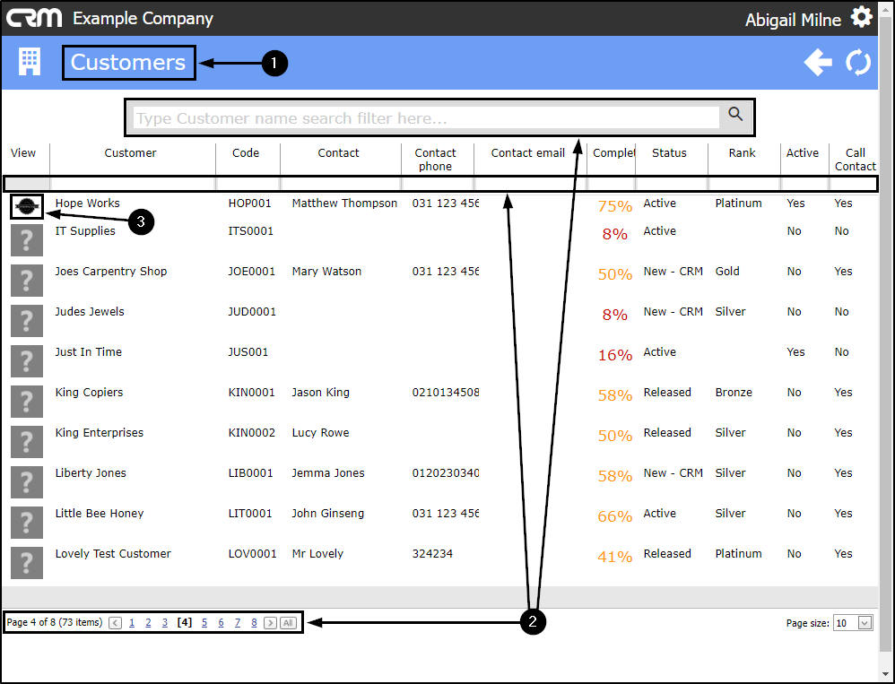 - Use the Page Reference field, Filter Row or Filter Text Box to find the applicable customer.
