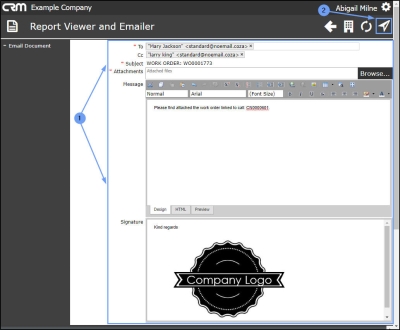 - Subject: This will auto populate with the Work Order number. You can type in additional text if required.