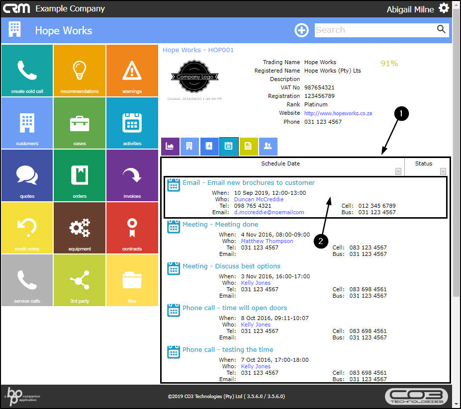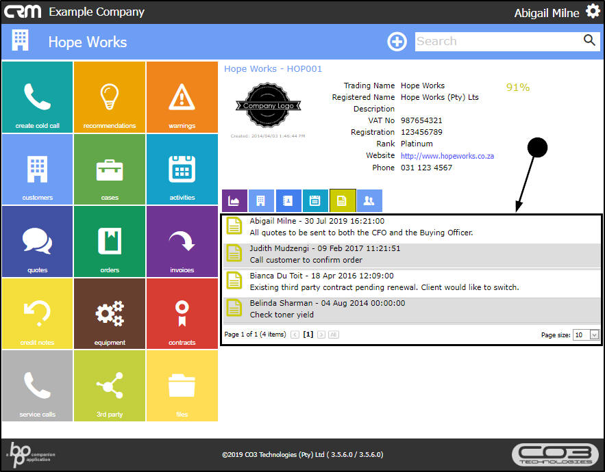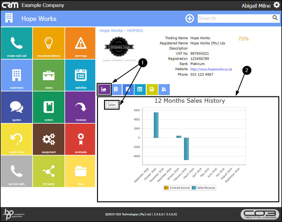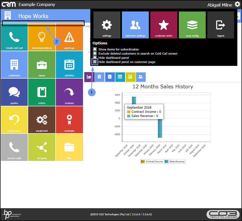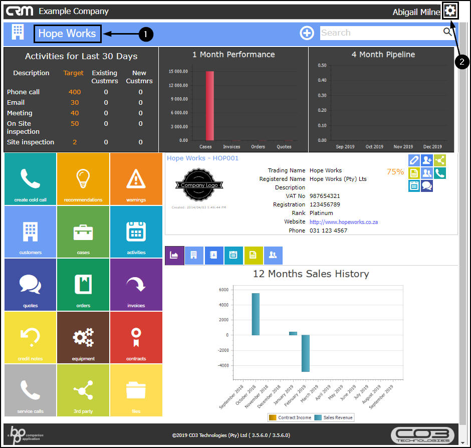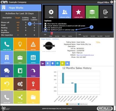 - Either, click on the CRM logo to return to the Dashboard (Home page),