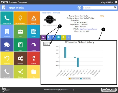 - The 12 Months Sales History will be displayed by default, in the Details frame, as the Customer Dashboard opens.