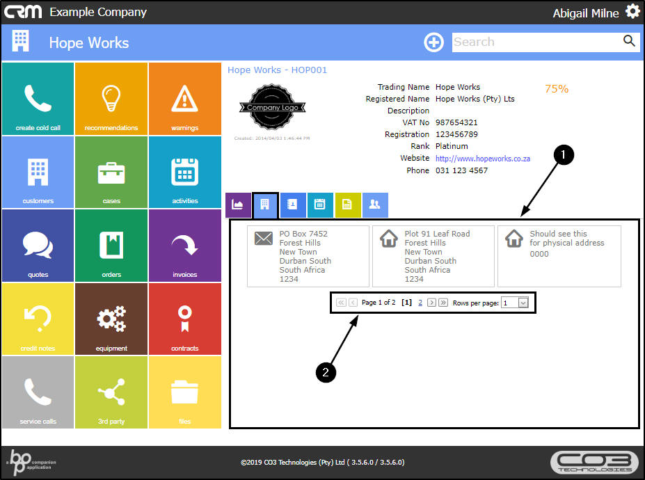 - The customer addresses can only be viewed here - if you wish to make changes to the addresses, refer to customer addresses.