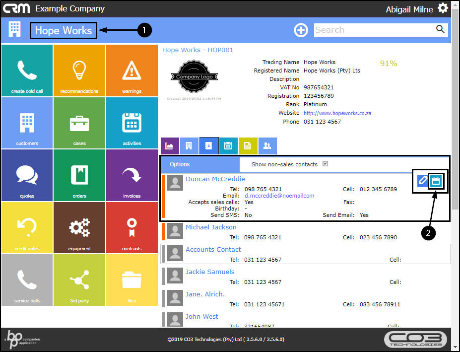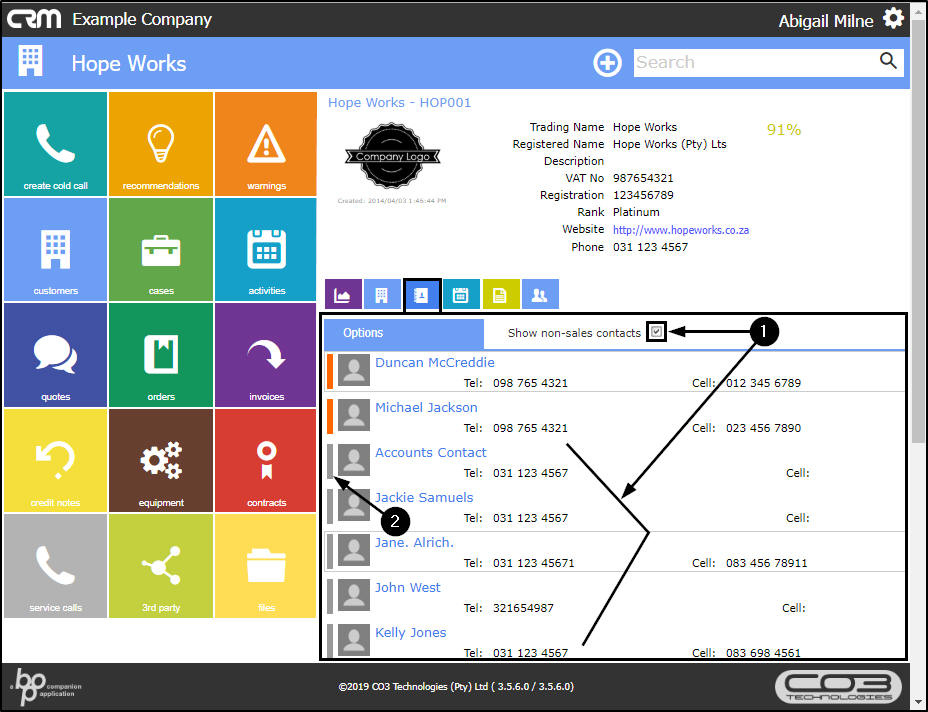 - If you would like to see all the customer contacts, select the Show non-sales contacts checkbox.
