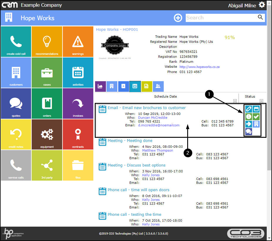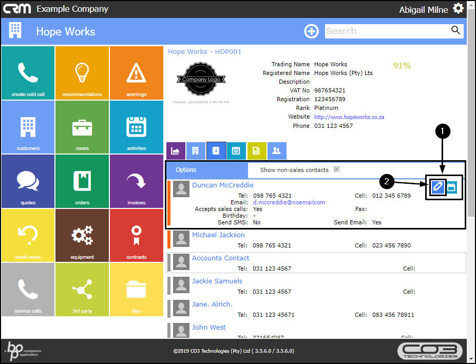 - If you expanded a Sales contact - you will also now be able to view 2 Action buttons in this frame.