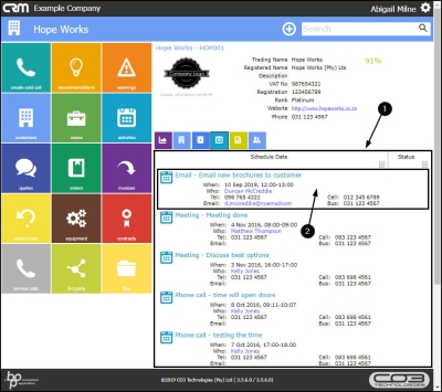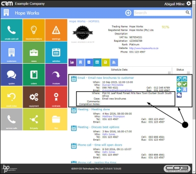 any Sales contact (without expanding the contact frame - you will also be able to view these