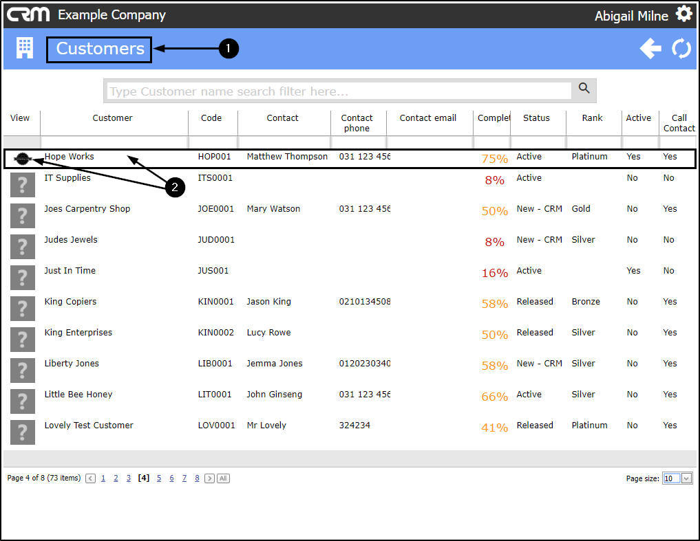 - Select the specific customer that you wish to view by clicking on the Customer Icon, in the View column.
