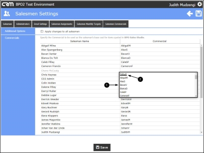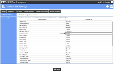 - The Salesmen Commercials option is for linking commercials created in BPO to salesmen in CRM.