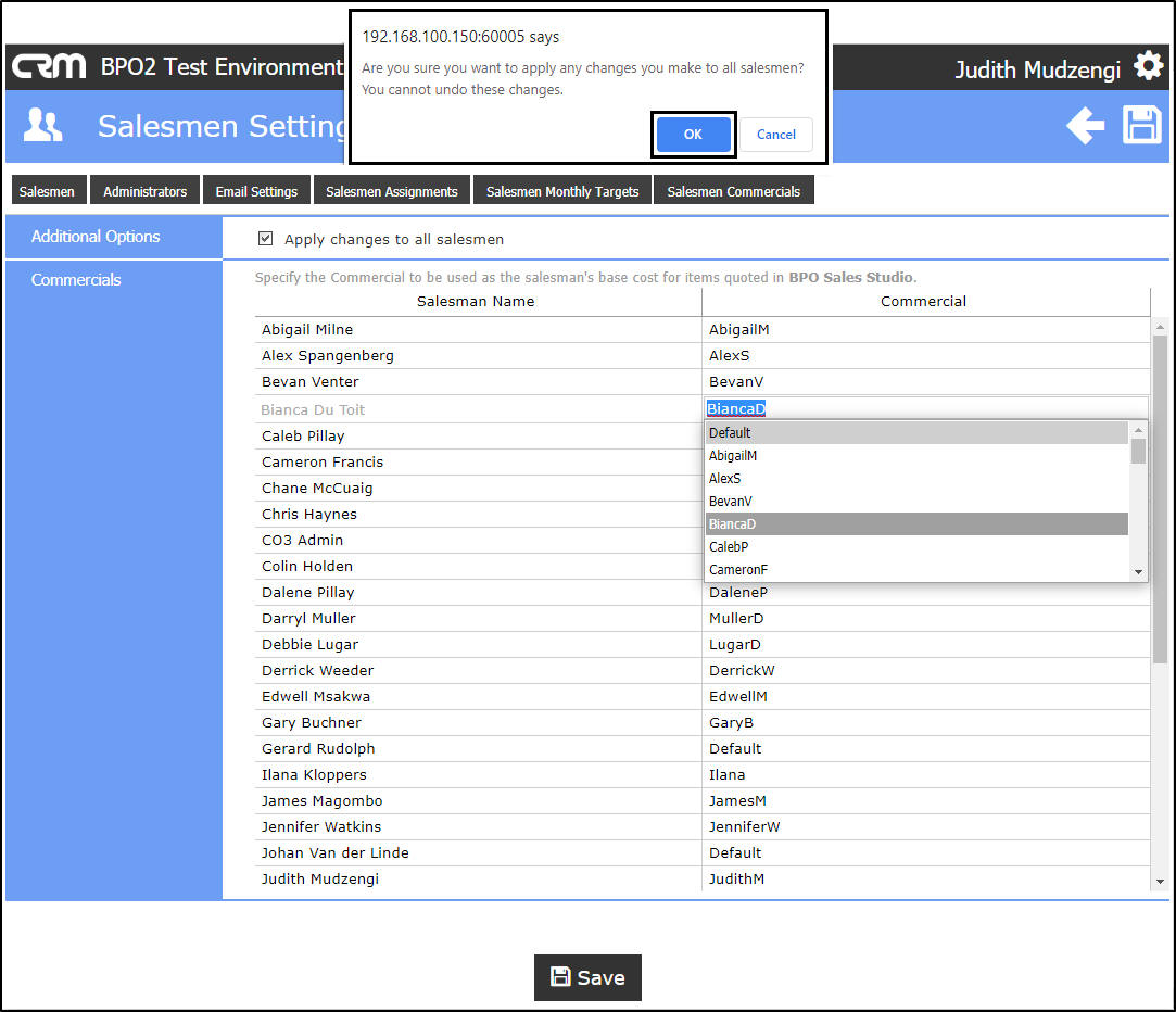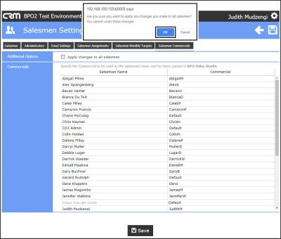 - Are you sure you want to apply any changes you make to all salesmen? You cannot undo the changes.