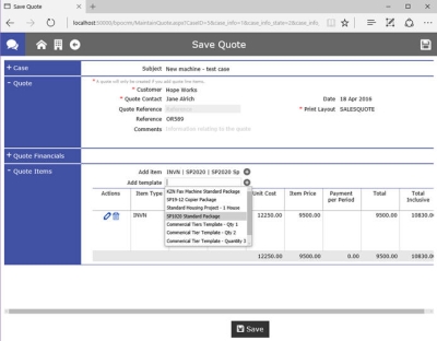 - To add Sales Templates: click on the 'Add Quote Template Items' dropdown