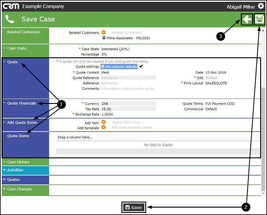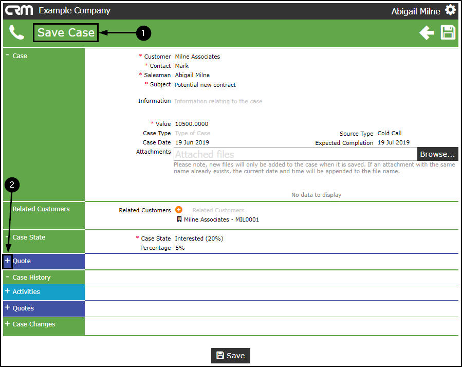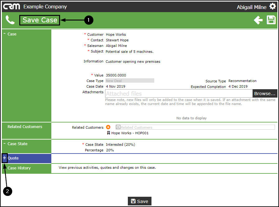 - (Either of these buttons will direct you to the Save Case page where you can add a new quote.)