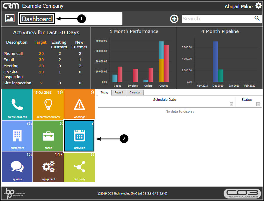 - For the purpose of this manual, click on the CRM logo to return to the Dashboard (Home page).