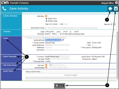 - (Either of these buttons will direct you to the Save Activity page where you can add a new quote.)
