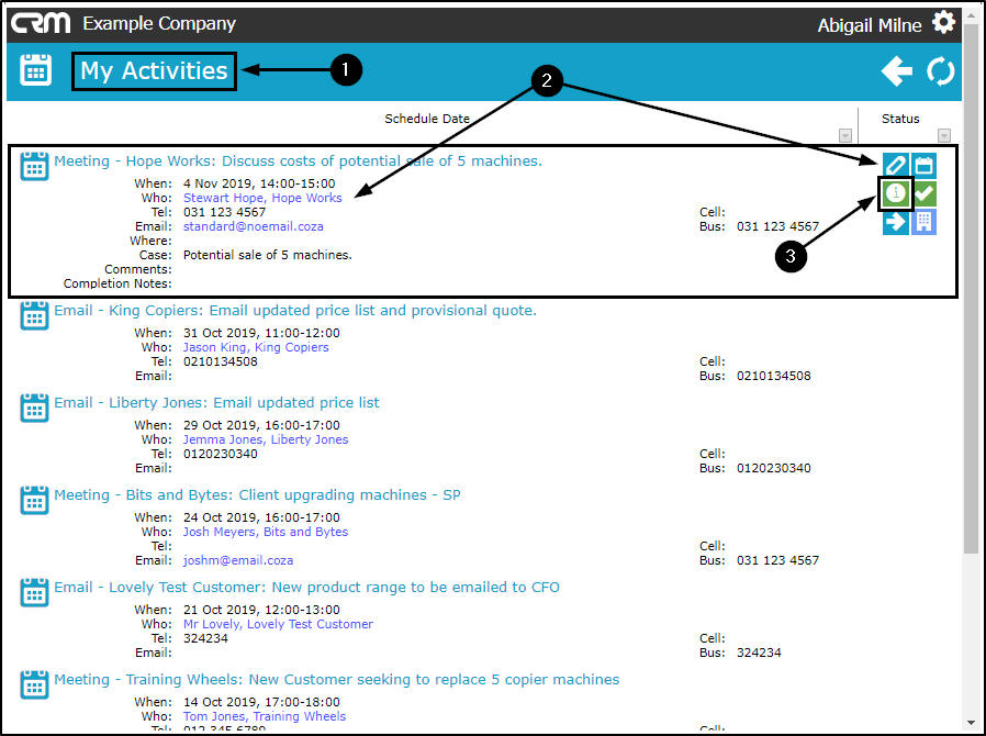 - Click on either the View/Edit this Activity button or the Reschedule this Activity button.