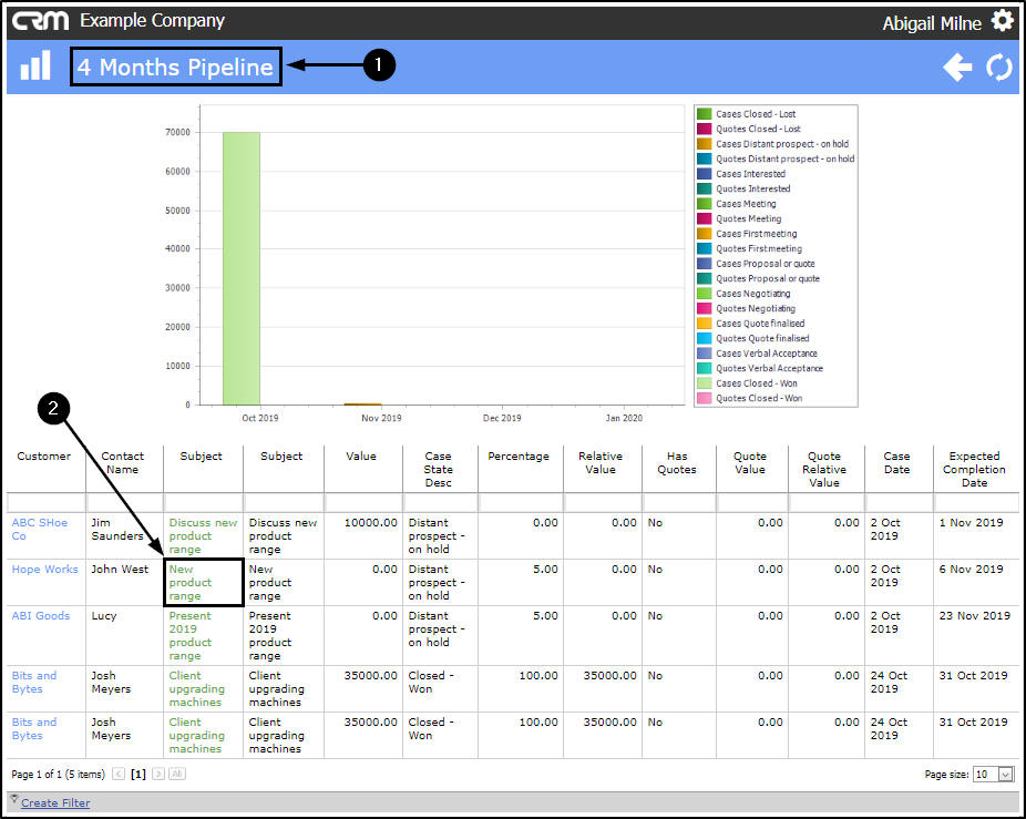 - In this example, the bar represents Cases Closed - Won and the amount is 7000.