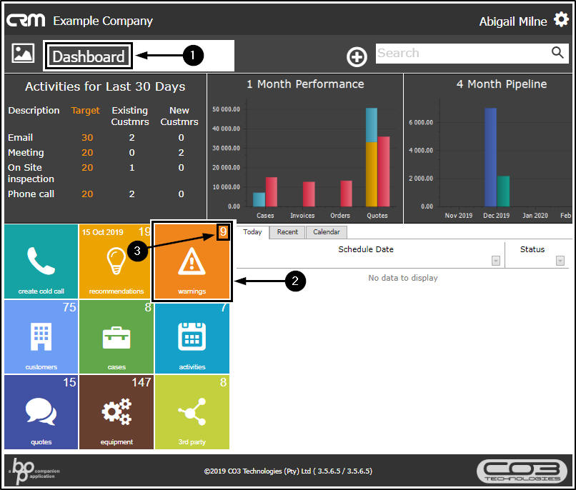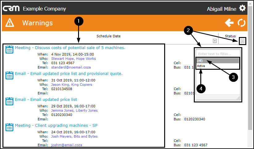 - Here you can view a list of all the warnings, for all customers - where you have activities pending.