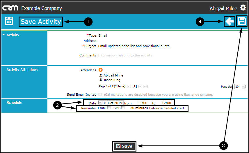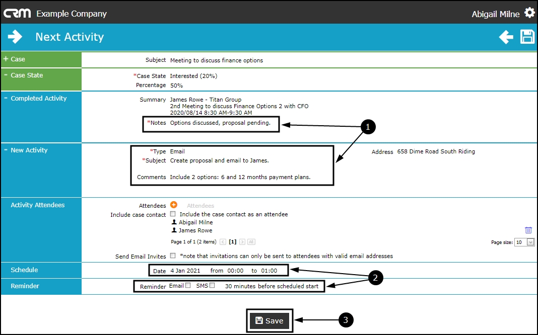 - You can Schedule the date of the New Activity and set a Reminder at this point, if you wish.