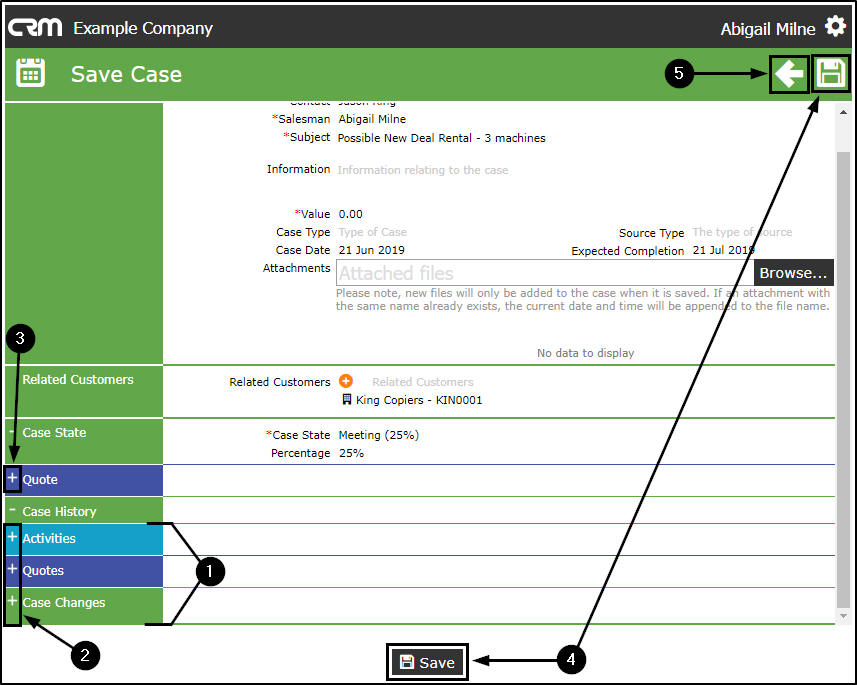 - You will note that the case details are auto populated. You can edit all these details, except for the Customer, Salesman, Subject and Information fields.