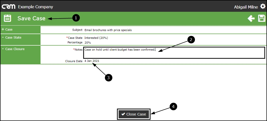 - Note: This will close the Case and any related Activities, this action cannot be undone.