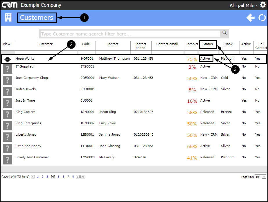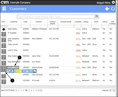 - In the Customers listing page, click on the selected customer icon in the View column.